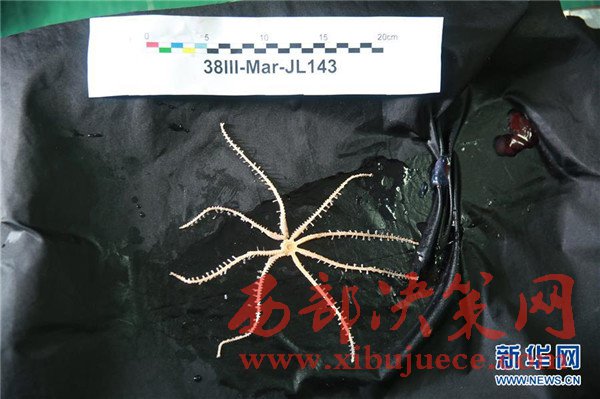 這是5月23日拍攝的“蛟龍”號(hào)在馬里亞納海溝帶回的生物樣品海星。