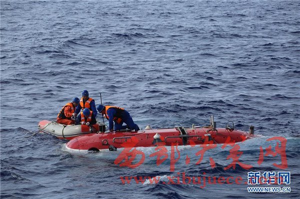 5月23日,“蛟龍”號(hào)完成下潛準(zhǔn)備回到“向陽紅09”科學(xué)考察船上。