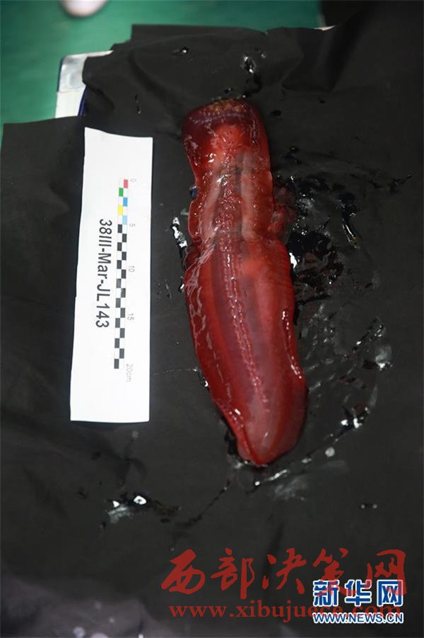 這是5月23日拍攝的“蛟龍”號(hào)在馬里亞納海溝帶回的生物樣品海參。