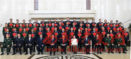 自治區(qū)領(lǐng)導(dǎo)李紀(jì)恒、布小林、任亞平、李佳、羅永綱、杜梓、馬明與全國公安系統(tǒng)英雄模范立功集體內(nèi)蒙古受獎(jiǎng)單位代表和個(gè)人合影。