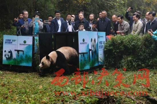 同時,我省在全國率先開展救護(hù)大熊貓易地放歸以及人工繁育大熊貓野化訓(xùn)練和放歸自然工作。截至2016年底,易地放歸救護(hù)病餓野生大熊貓2只,野化培訓(xùn)人工繁育大熊貓13只,放歸人工繁育大熊貓7只。2016年10月20日,大熊貓“華妍”“張夢”放歸自然活動在四川雅安栗子坪國家級自然保護(hù)區(qū)舉行。上午10點半,籠門開啟,大熊貓“華妍”和“張夢”相繼奔向山林。這是全球首次嘗試同時放歸兩只大熊貓。