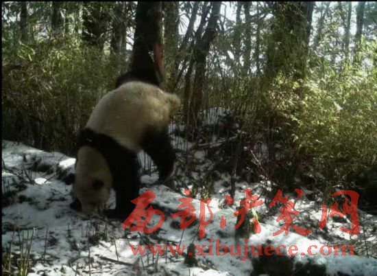 臥龍國家級自然保護(hù)區(qū)木江坪保護(hù)站紅外攝像機(jī)拍攝到的大熊貓在樹上做標(biāo)記求偶