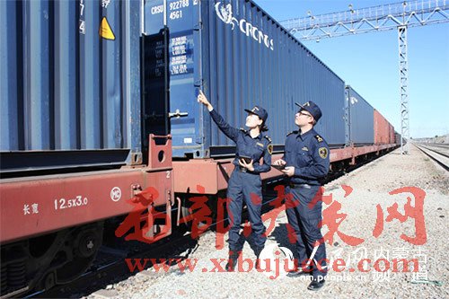 滿洲里海關(guān)關(guān)員正在對(duì)準(zhǔn)備從滿洲里口岸出境的中歐班列辦理快速驗(yàn)放手續(xù)。