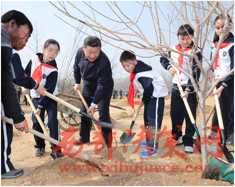 揮鍬鏟土填入樹坑,培實新土堆起圍堰,陽春三月里,習(xí)近平總書記在北京市朝陽區(qū)將臺鄉(xiāng)接連種下了一顆顆樹苗……