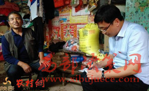 吳超與貧困戶劉牛娃交談,詢問困難需求