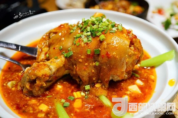 肘子燉得酥爛,辣辣的,吃起來(lái)一點(diǎn)兒也不膩了。
