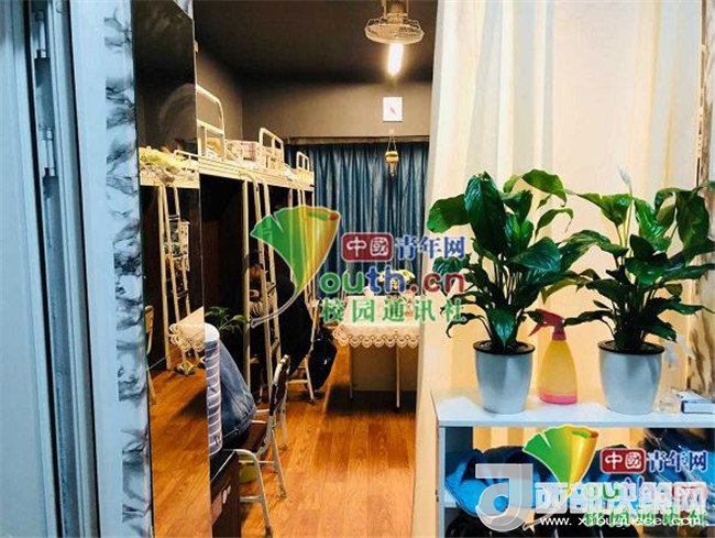 身為音樂專業(yè)的他們,在陽臺(tái)上打造出一塊音樂天地,既可以在這里彈吉他也方便大家晨起練聲;為了注意個(gè)人形象,他們在洗漱間購置了一面鏡子,供大家使用;甚至宿舍里大大小小的綠植,每天都會(huì)有專人進(jìn)行照料。