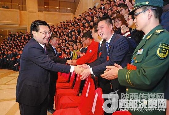 十二月十七日,共青團陜西省第十三次代表大會在西安開幕。圖為省委書記、省長胡和平親切接見參會代表。陜西日報記者 宋紅梅攝