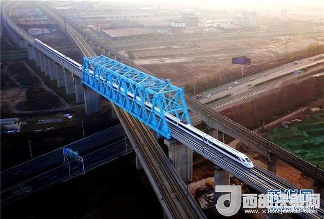 12月19日,一列高鐵從轉(zhuǎn)體成功后的商合杭高鐵跨鄭徐高鐵T構(gòu)梁下駛過(guò)。商合杭高鐵線路全長(zhǎng)794.55公里,設(shè)計(jì)時(shí)速350公里。