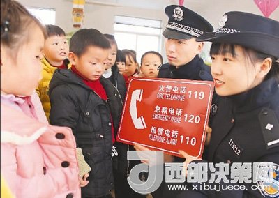 12月25日,浙江省臺(tái)州市公安局椒江分局下陳派出所民警深入轄區(qū)中小學(xué)校、幼兒園,開展防拐騙、消防安全、交通安全等防范教育,通過講解安全小常識(shí)、發(fā)放防范宣傳資料等方面知識(shí),提高學(xué)生和幼兒園小朋友安全意識(shí)和自我防范能力。圖為民警在教幼兒園小朋友如何撥打緊急求助電話。何文斌 攝(人民視覺)