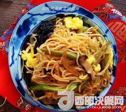 豆角燜面是中國(guó)北方地區(qū)常見(jiàn)的漢族特色小吃,南方則很少見(jiàn)。燜面是利用水蒸氣將面條、豆角燜熟,故稱燜面。該小吃面條筋韌,豆角脆嫩,咸香味濃,食之利口。這次用電飯煲燜出的面柔軟有水份卻不膩不油,有肉,有蔬菜,又有主食的快手一鍋出,你不想試試?