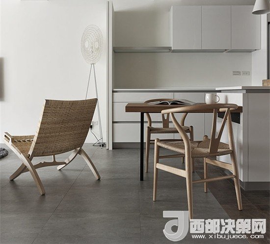 簡約的木制風格中加上一把色調(diào)一致的藤椅,表現(xiàn)出了一種舊時的情懷。