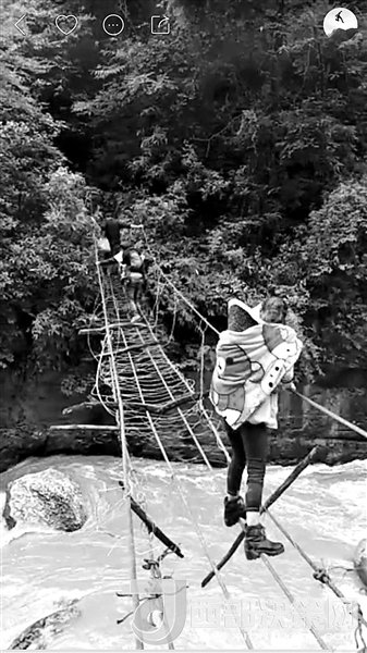 現(xiàn)在,村里24歲的彝族小伙兒拉博已經(jīng)成為首批網(wǎng)紅之一。2016年11月19日,垂直距離約800米、總共約1000級(jí)臺(tái)階的懸崖村鋼梯工程竣工。拉博就是鋼梯施工隊(duì)的一員,在山崖最陡峭的一段,他親手打下了固定的鋼釘。鋼梯完工后,拉博特意去“跑”了一遍,從山頂?shù)缴侥_僅耗時(shí)18分鐘,而這段路普通人可能需要一個(gè)半小時(shí)。從小放羊的拉博習(xí)慣了在山間奔跑跳躍,爬天梯、過吊橋、放牛羊這些生活日常,在5個(gè)月的時(shí)間里為他帶來了12.6萬的粉絲。
