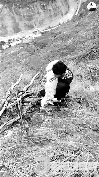 開通直播后,拉博問村里:“這個(gè)平臺(tái)是我修的,能不能用我的名字?”村里同意了,這個(gè)叫做“拉博站”的地方也成為了“懸崖村飛人”拉博直播的主要場景。拉博直播時(shí)蹦蹦跳跳,看的人覺得很危險(xiǎn),他自己不覺得,他說自己從小到大,這個(gè)懸崖村一直就是這樣的。“山上放羊怎么戴護(hù)具啊?如果羊跑出去了,不管什么地形也得給抱回來。”