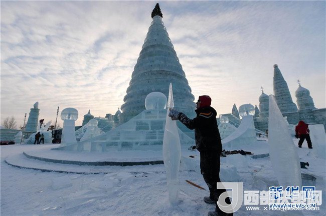 1月3日,在哈爾濱冰雪大世界園區(qū),冰雕選手在進行創(chuàng)作。當日,在哈爾濱冰雪大世界園區(qū)內(nèi)舉行的國際組合冰冰雕比賽進入第四天。經(jīng)過來自世界各地的冰雕選手悉心雕琢,一塊塊冰出落成精美的藝術(shù)作品,仿佛晶瑩剔透的出“冰”芙蓉。(記者 王建威 攝)