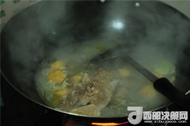 8.煮至丸子變大完全熟透,將排骨湯和排骨一起放入湯里