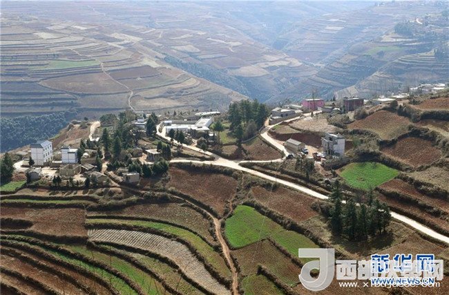 尋甸回族彝族自治縣功山鎮(zhèn)偏路村新修通的公路(2月17日攝)。