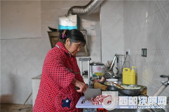 饒梅香在家中剁餃子餡準備包餃子(2月14日攝)。