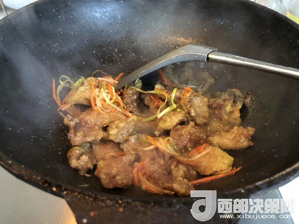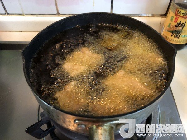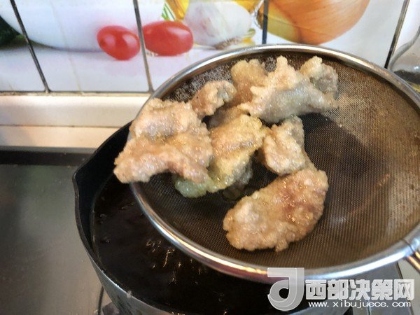 10.把油鍋加熱至八成熱后,把肉片復(fù)炸至外表發(fā)脆