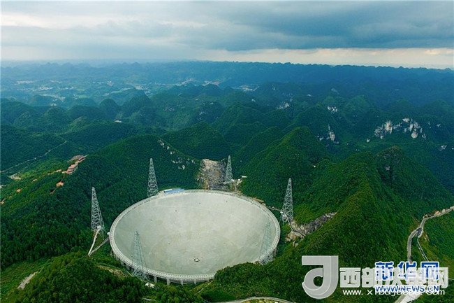 這是航拍的500米口徑球面射電望遠鏡(FAST)全景(2017年8月9日攝)。