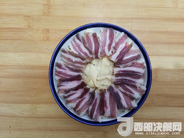 2、蒸制的時(shí)候,千張咸肉中可以加入少許水,我沒有加水,蒸出來(lái)稍稍有些干。