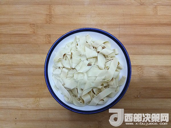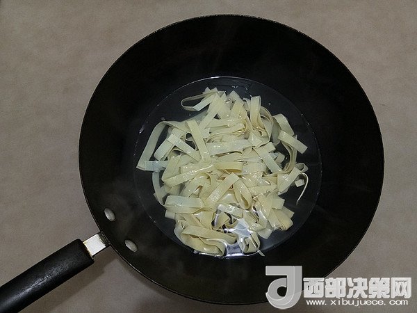 5.焯過(guò)水的千張撈出放入盤中(用稍微有些深度的容器最好)