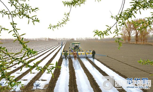 日前,位于塔里木墾區(qū)的新疆生產(chǎn)建設(shè)兵團(tuán)職工群眾開始播種棉花。據(jù)了解,塔里木墾區(qū)新疆生產(chǎn)建設(shè)兵團(tuán)計(jì)劃播種棉花300多萬(wàn)畝,4月上旬將完成全部播種任務(wù)。新華社發(fā)(杜炳勛 攝)