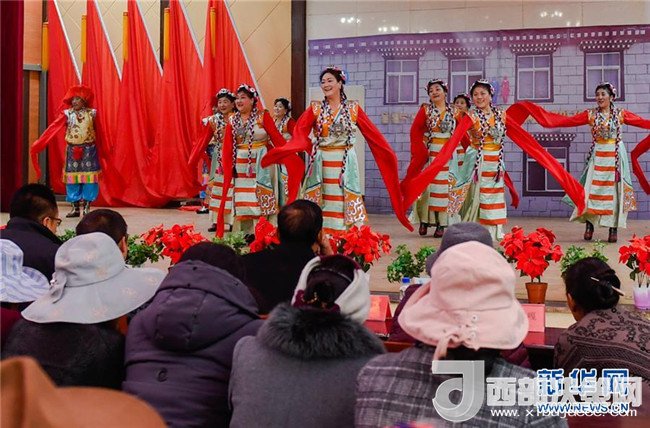 這是拉薩市城關(guān)區(qū)納金鄉(xiāng)塔瑪村慶祝百萬農(nóng)奴解放紀(jì)念日文藝表演現(xiàn)場(chǎng)(3月27日攝)。