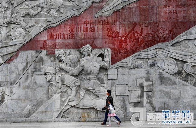 4月26日,市民從感恩奮進墻前走過。感恩奮進墻是花崗巖浮雕墻,長230米,高12米,再現(xiàn)了青川的風土人情、歷史文化和眾志成城、自強不息的抗震救災精神、地震災后重建和生態(tài)青川的壯美畫卷。新華社記者陶明攝