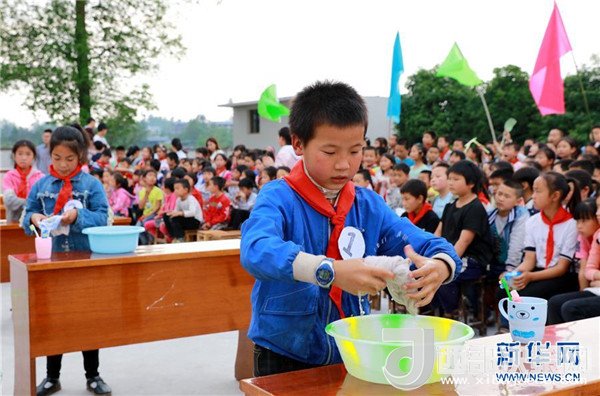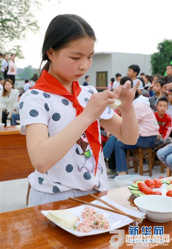 當(dāng)日,九年一貫制的四川省華鎣市慶合初級中學(xué)舉行學(xué)生生活自理能力大賽。在該校就讀的小學(xué)生和初一、初二年級學(xué)生參加了穿衣服、洗漱、疊衣服、炒菜、包餃子等項(xiàng)目的比賽。該校把提高學(xué)生生活自理能力作為一項(xiàng)重要的教學(xué)工作,旨在引導(dǎo)孩子們養(yǎng)成良好的生活習(xí)慣。新華社發(fā)(周松林 攝)