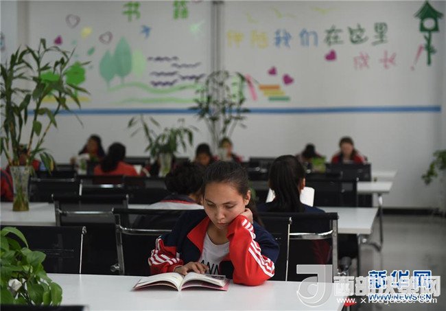 在北京援建的墨玉縣北京中學(xué)校園里,學(xué)生在圖書館里閱讀(4月20日攝)。