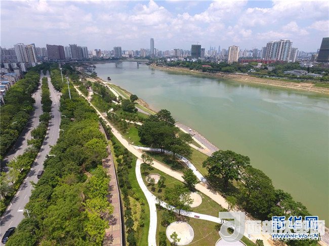 廣西南寧市自2012年起推進(jìn)全長(zhǎng)74公里的邕江綜合整治工程,以堤、路、景建設(shè)相結(jié)合,圍繞“治水、建城、為民”的主線(xiàn),開(kāi)展“百里秀美邕江”建設(shè)。截至2018年4月,已建成60公里綠化工程,灘涂景觀帶也在加緊建設(shè)。整治工程全面建成后,邕江兩岸景觀將舊貌換新顏,也將成為當(dāng)?shù)匕傩盏男蓍e新去處。新華社記者 周華 攝
