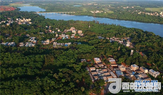 海口市瓊山區(qū)云龍鎮(zhèn)的村鎮(zhèn)掩映在綠樹(shù)和濕地中(5月30日無(wú)人機(jī)拍攝)。
