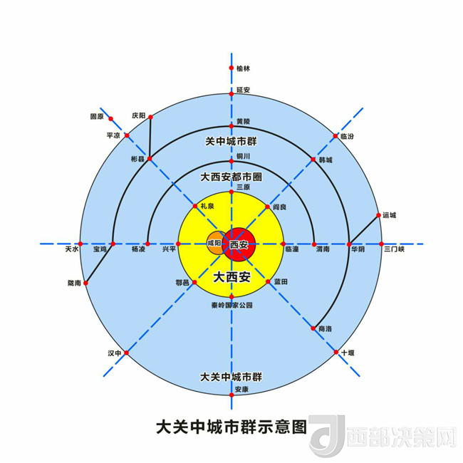 為研究大西安為中心的大關(guān)中城市群,我們先后赴河南、四川、安徽、浙江做了廣泛調(diào)研,并與咸陽市、西咸新區(qū)、西安市和省上相關(guān)部門做了深入探討,提出構(gòu)建大西安為中心的大關(guān)中城市群設(shè)想。