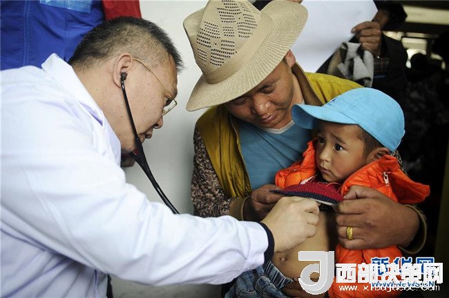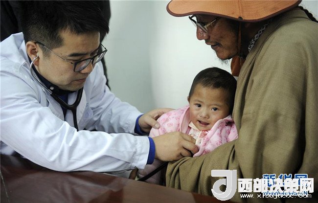 7月11日,在西藏那曲,一名貧困先心病患兒在接受檢查。