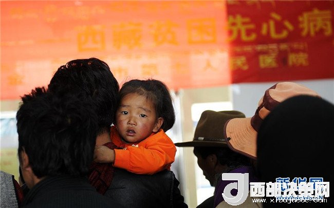 7月11日,在西藏那曲,一名家長帶著先心病患兒接受檢查。