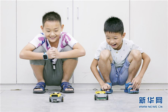 暑假期間,福建省晉江市舉辦青少年科普公益課堂,增強(qiáng)青少年的創(chuàng)新意識,豐富學(xué)生們的假期生活。 新華社發(fā)(賴進(jìn)財(cái) 攝)