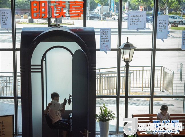 7月17日,在安徽合肥市瑤海圖書城內(nèi),孩子們在朗讀亭內(nèi)讀書。該圖書城專門設(shè)立了朗讀亭,讓讀者閱讀的同時可以朗讀自己喜愛的書籍段落,并留下錄音上傳網(wǎng)絡(luò),分享給自己的好友。 新華社記者郭晨攝