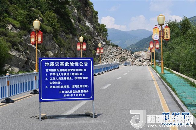 這是五臺(tái)山景區(qū)管委會(huì)在梵仙山路段山體崩塌現(xiàn)場(chǎng)設(shè)置的警示牌(7月21日攝)。受降雨影響,山西五臺(tái)山景區(qū)于7月19日和20日發(fā)生兩起山體崩塌地質(zhì)災(zāi)害,沒有造成人員傷亡和車輛損失。新華社發(fā)(楊晨光攝)
