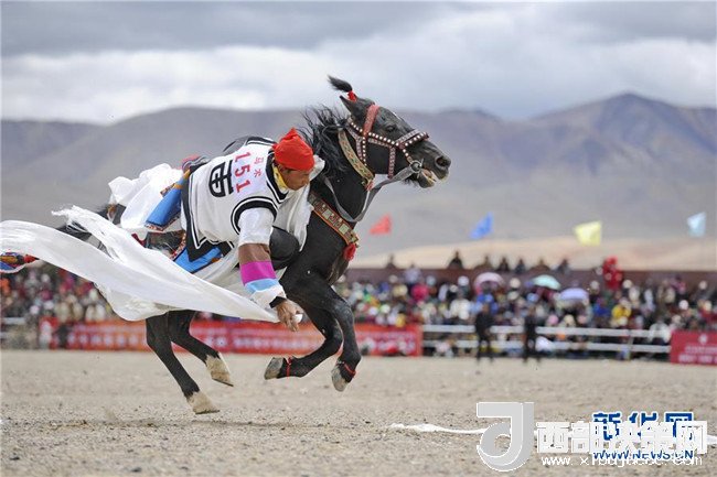 當(dāng)日,西藏阿里地區(qū)在獅泉河鎮(zhèn)舉行賽馬競(jìng)技大賽,比賽項(xiàng)目有騎馬拾哈達(dá)、撿茶磚、騎馬射箭、馬術(shù)表演等,共有150名農(nóng)牧民選手參加比賽,吸引了2萬(wàn)余名觀眾前來(lái)觀看。新華社記者張汝鋒攝