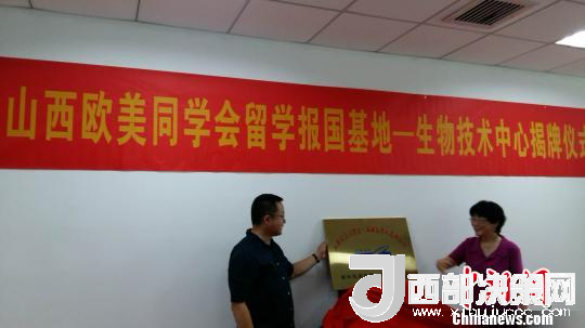 會前,與會人員共同見證了“留學報國基地—生物技術(shù)中心揭牌儀式”。山西歐美同學會 供圖