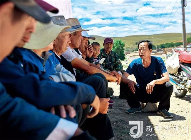 內(nèi)蒙古烏蘭察布市察哈爾右翼前旗黃茂營(yíng)鄉(xiāng)南窯村駐村第一書記呂遠(yuǎn)成(右一)在與村民交流 彭源攝/ 本刊