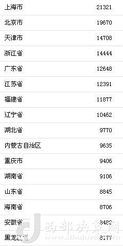 上海人均消費支出全國第一