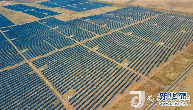 這是位于庫(kù)布其沙漠中的億利集團(tuán)生態(tài)能源光伏電站(7月11日無(wú)人機(jī)拍攝)。 新華社記者 彭源 攝