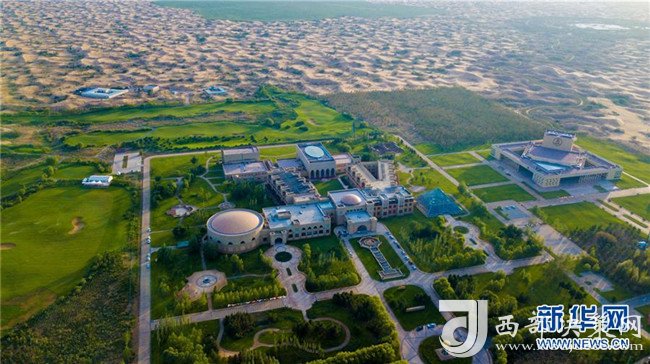 這是位于庫(kù)布其沙漠中的億利集團(tuán)阿木古龍甘草健康產(chǎn)業(yè)園(7月11日無(wú)人機(jī)拍攝)。 新華社記者 彭源 攝
