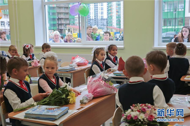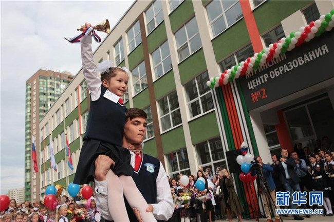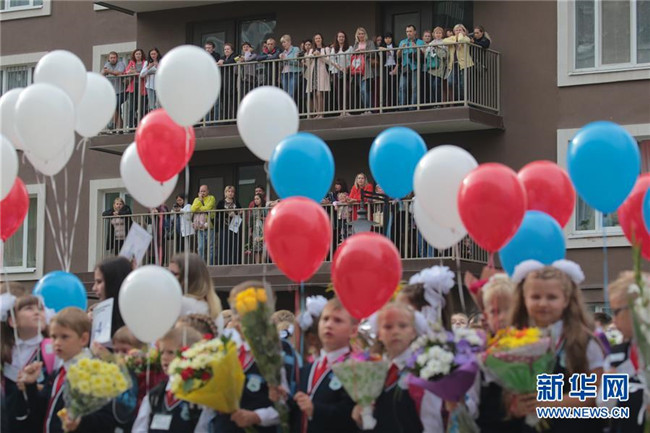 當(dāng)天是俄羅斯開學(xué)日,也是俄羅斯的“知識(shí)日”,眾多學(xué)校舉行開學(xué)典禮,迎接新學(xué)期的開始。 新華社發(fā)(莫京娜 攝)