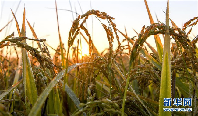 新疆察布查爾錫伯自治縣納達(dá)齊牛錄鄉(xiāng)一處待收割的水稻(9月26日攝)。眼下,地處新疆伊犁河谷的察布查爾錫伯自治縣約20萬畝水稻迎來收割季。當(dāng)?shù)剞r(nóng)民搶抓農(nóng)時(shí),忙碌在金色田園中。記者 胡虎虎 攝