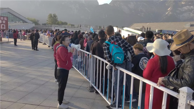 節(jié)日期間,景區(qū)實(shí)施了一系列限流、分流措施,集團(tuán)通過官網(wǎng)、微博、微信、廣播、LED屏幕等平臺(tái)定時(shí)公布景區(qū)天氣情況、游客數(shù)量、車輛飽和度等信息,在景區(qū)客流即將達(dá)到當(dāng)日限控客流時(shí),及時(shí)發(fā)布周邊景區(qū)旅游信息,引導(dǎo)游客現(xiàn)行前往周邊景區(qū)游覽。限控措施的實(shí)施對(duì)景區(qū)山下餐飲、住宿等旅游產(chǎn)業(yè)以及潼關(guān)東山、少華山以及洽川濕地等渭南市周邊景區(qū)起到了有效帶動(dòng)作用,促進(jìn)了渭南市全域旅游快速發(fā)展。度節(jié)期間,集團(tuán)積極協(xié)調(diào)相關(guān)單位,將執(zhí)勤任務(wù)與旅游服務(wù)相結(jié)合,順利完成了反恐防暴、應(yīng)急處突、安全保障、客流疏導(dǎo)等度節(jié)執(zhí)勤工作任務(wù),并在游客中心區(qū)域派駐應(yīng)急通訊車,確保景區(qū)通訊暢通。此外,集團(tuán)督查工作組持續(xù)深入一線,按照“三必查五必看”的標(biāo)準(zhǔn)要求,突出重點(diǎn)環(huán)節(jié),嚴(yán)格督查工作,推動(dòng)各單位進(jìn)一步夯實(shí)責(zé)任、提高工作標(biāo)準(zhǔn),有效確保了度節(jié)工作的順利開展。
