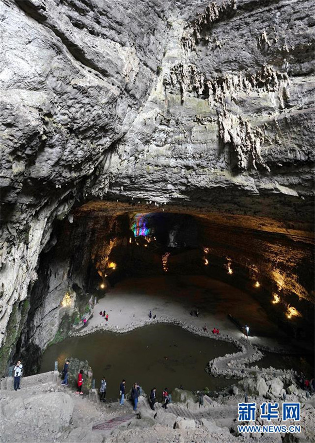 10月14日,游客在興文石海世界地質(zhì)公園的地下溶洞參觀(guān)。