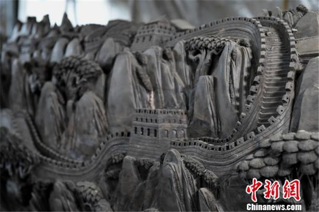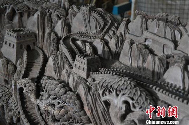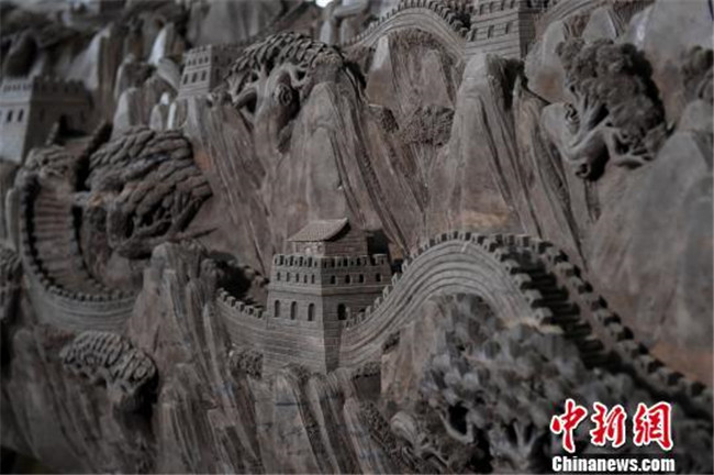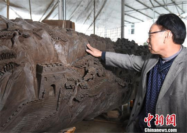 重慶市民耗時(shí)三個(gè)月在六米烏木上雕刻萬(wàn)里長(zhǎng)城